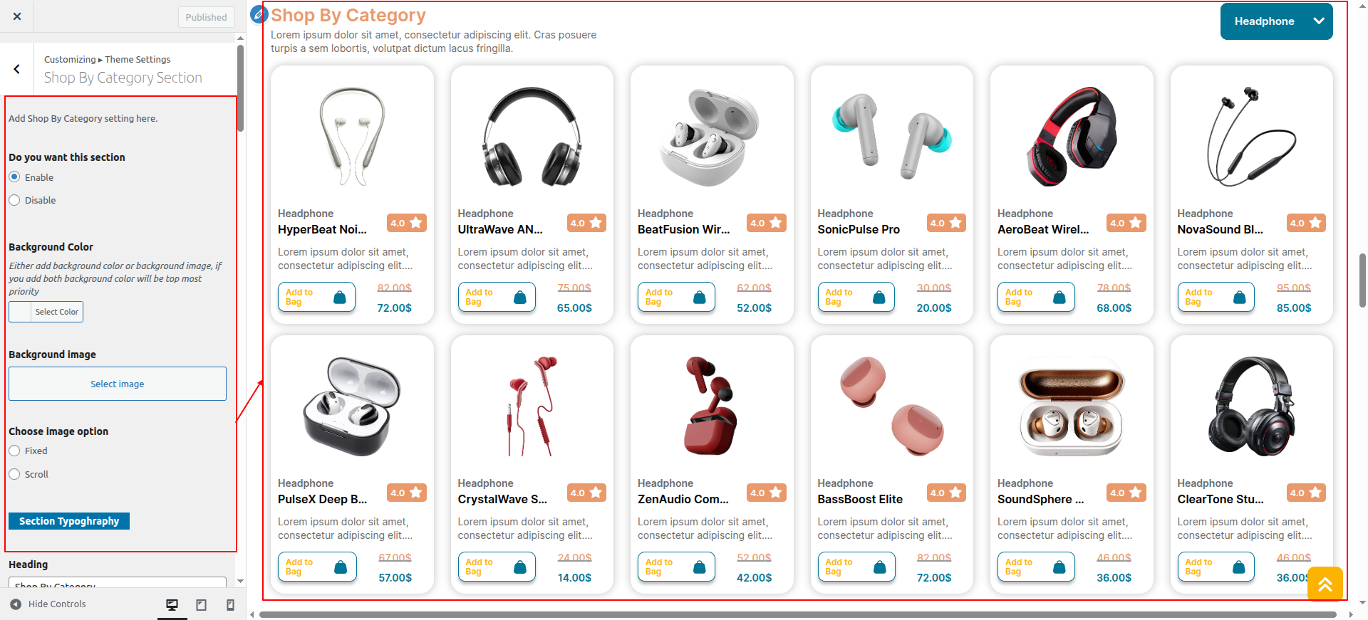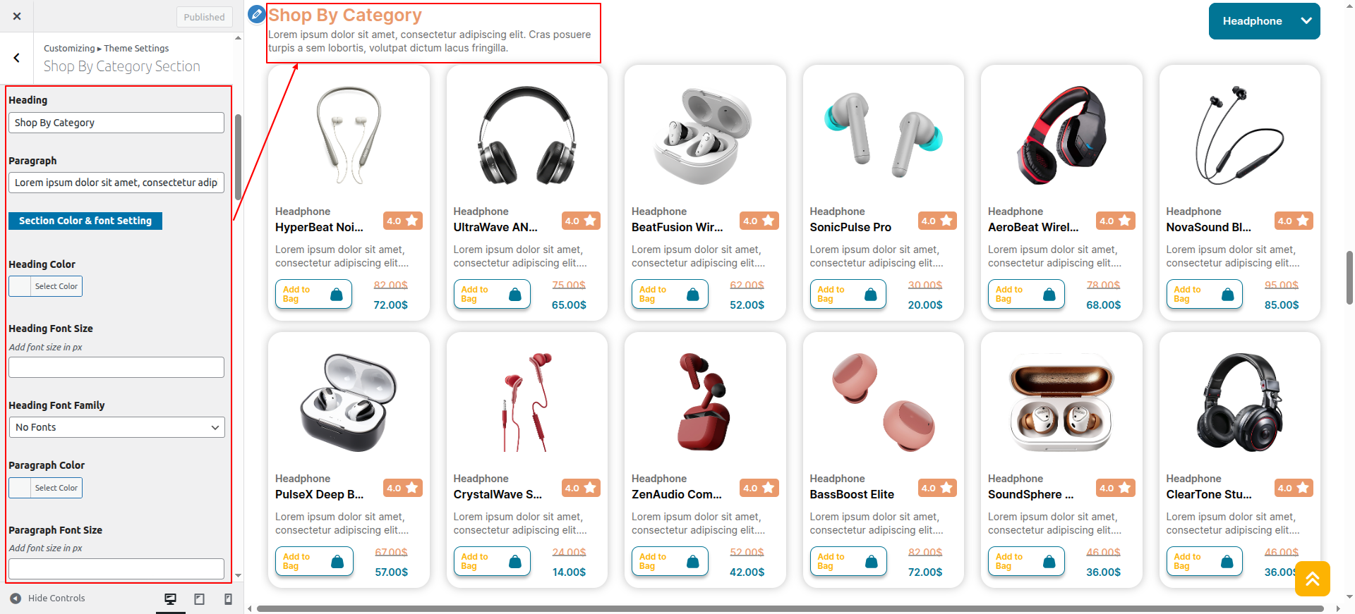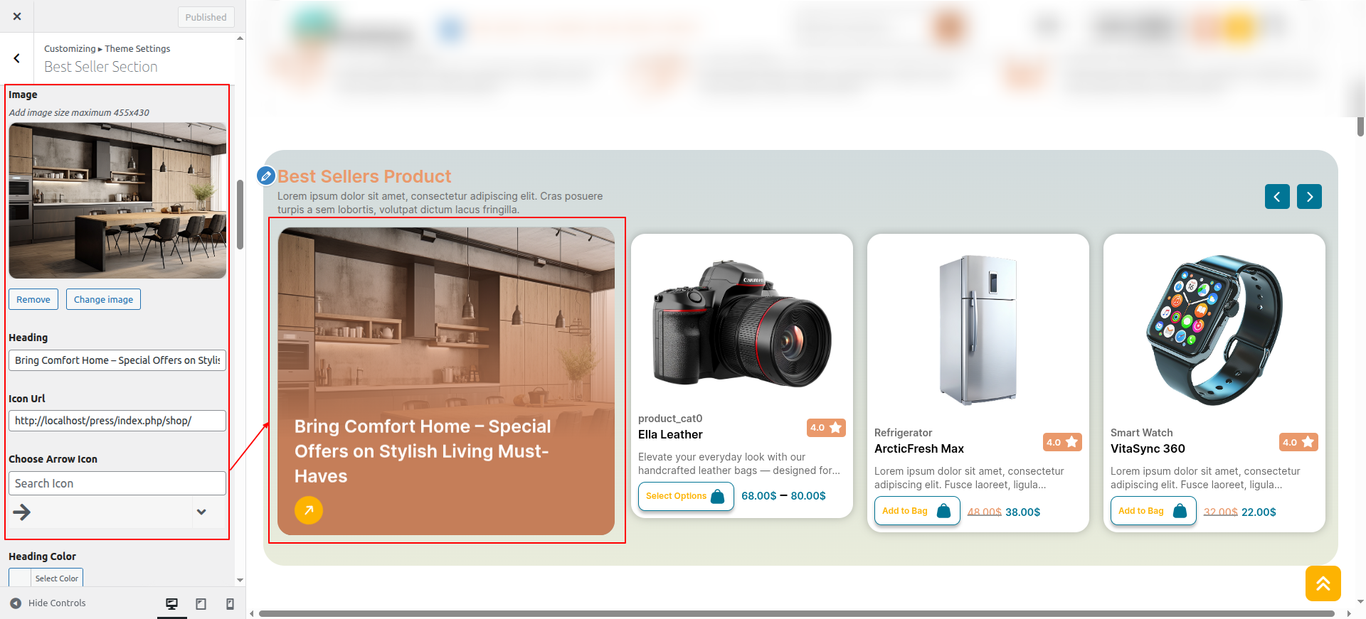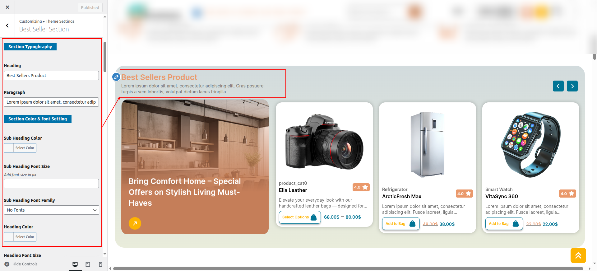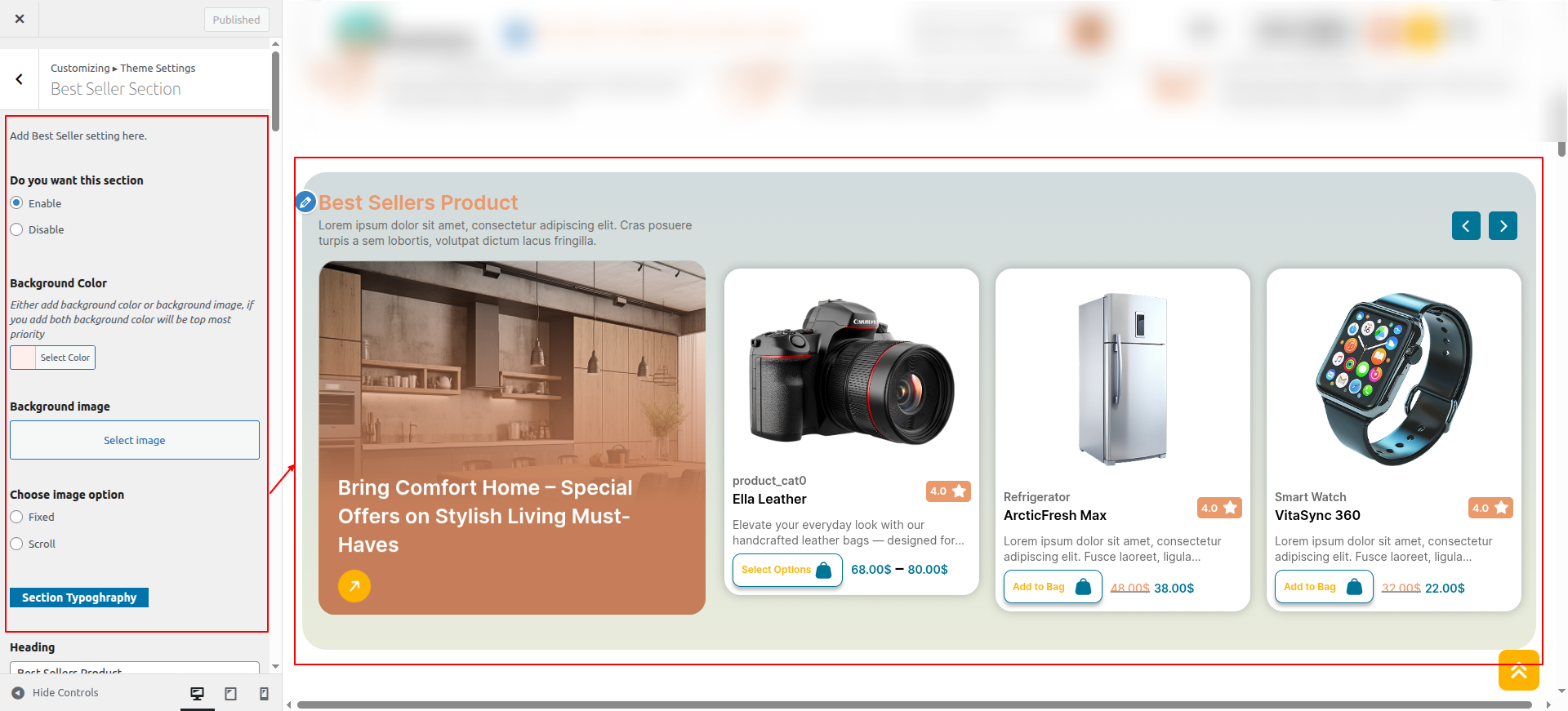Go to Appearance >> Customize >> Theme Setting >> Best Seller Section