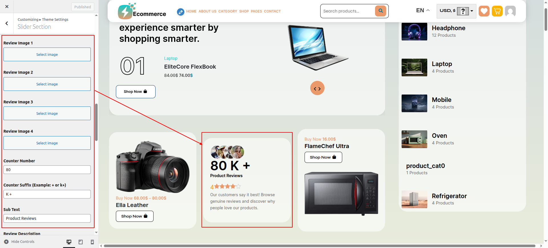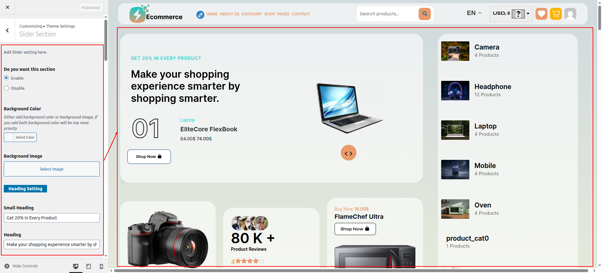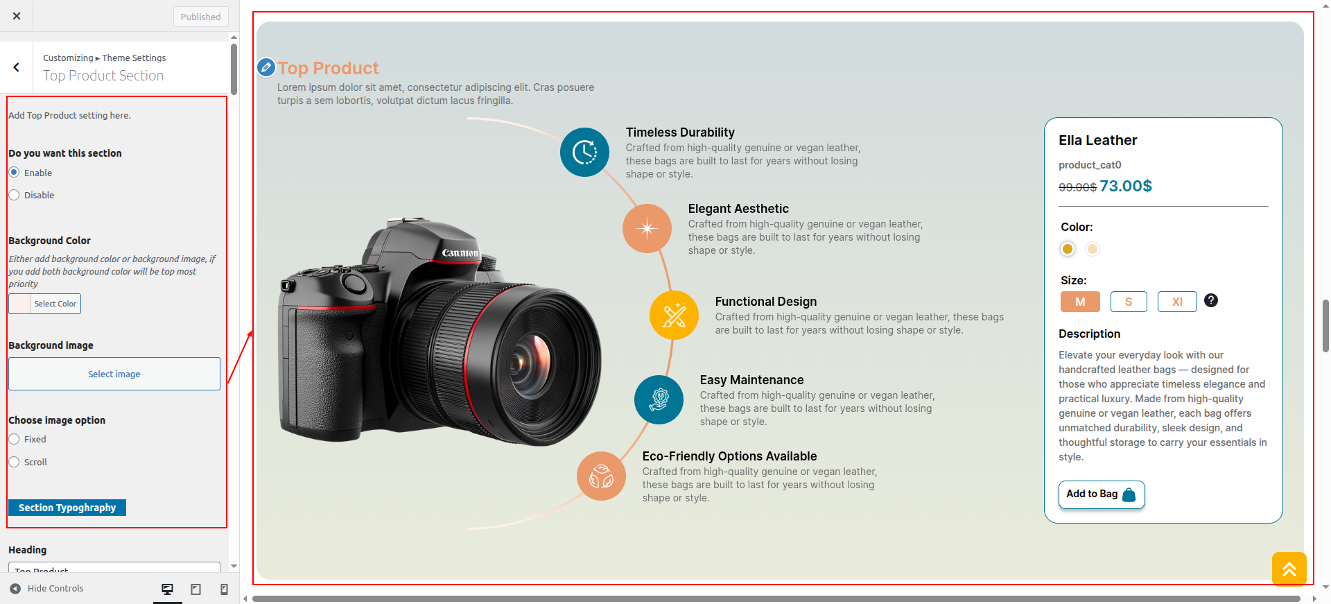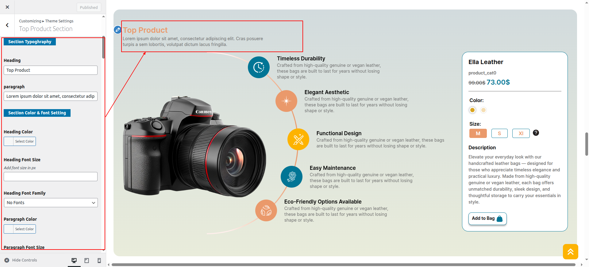 Go to Appearance >> Customize >> Theme Settings >>Top Product Section