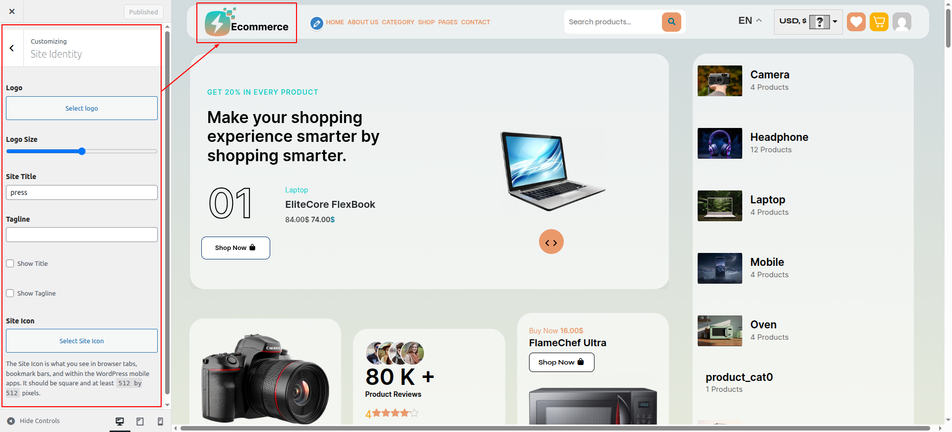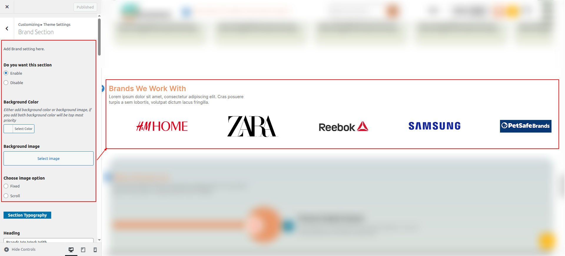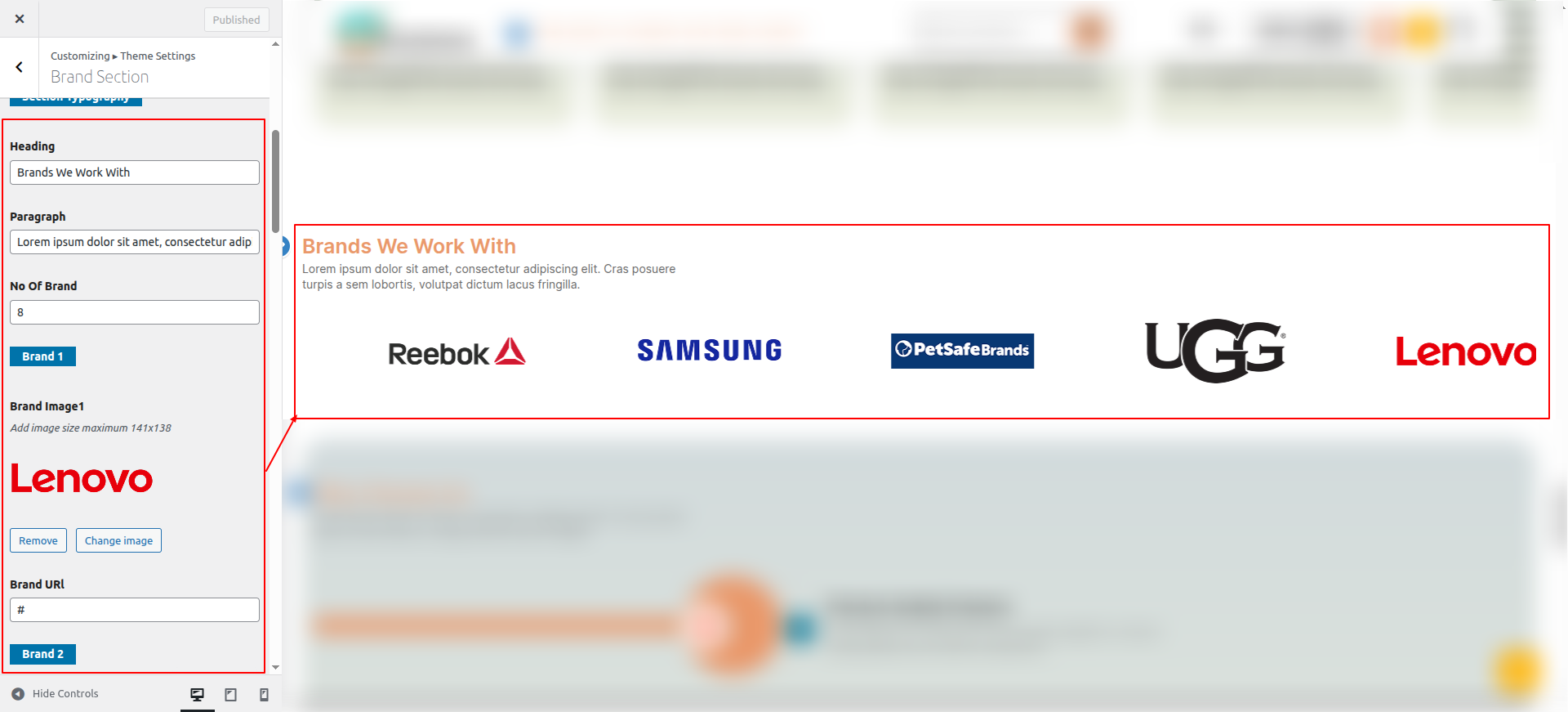Go to Appearance >> Customize >> Theme Settings >> Brand Section