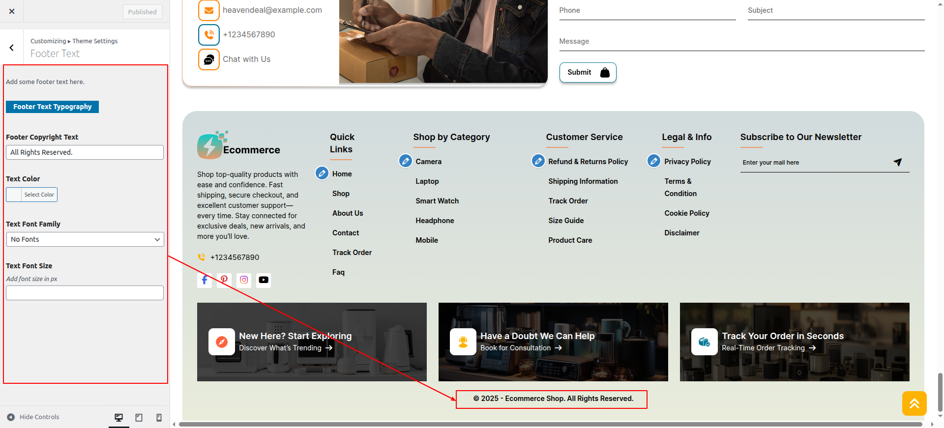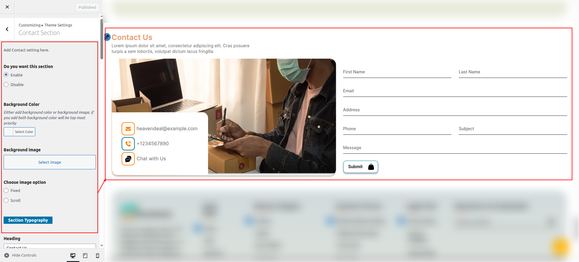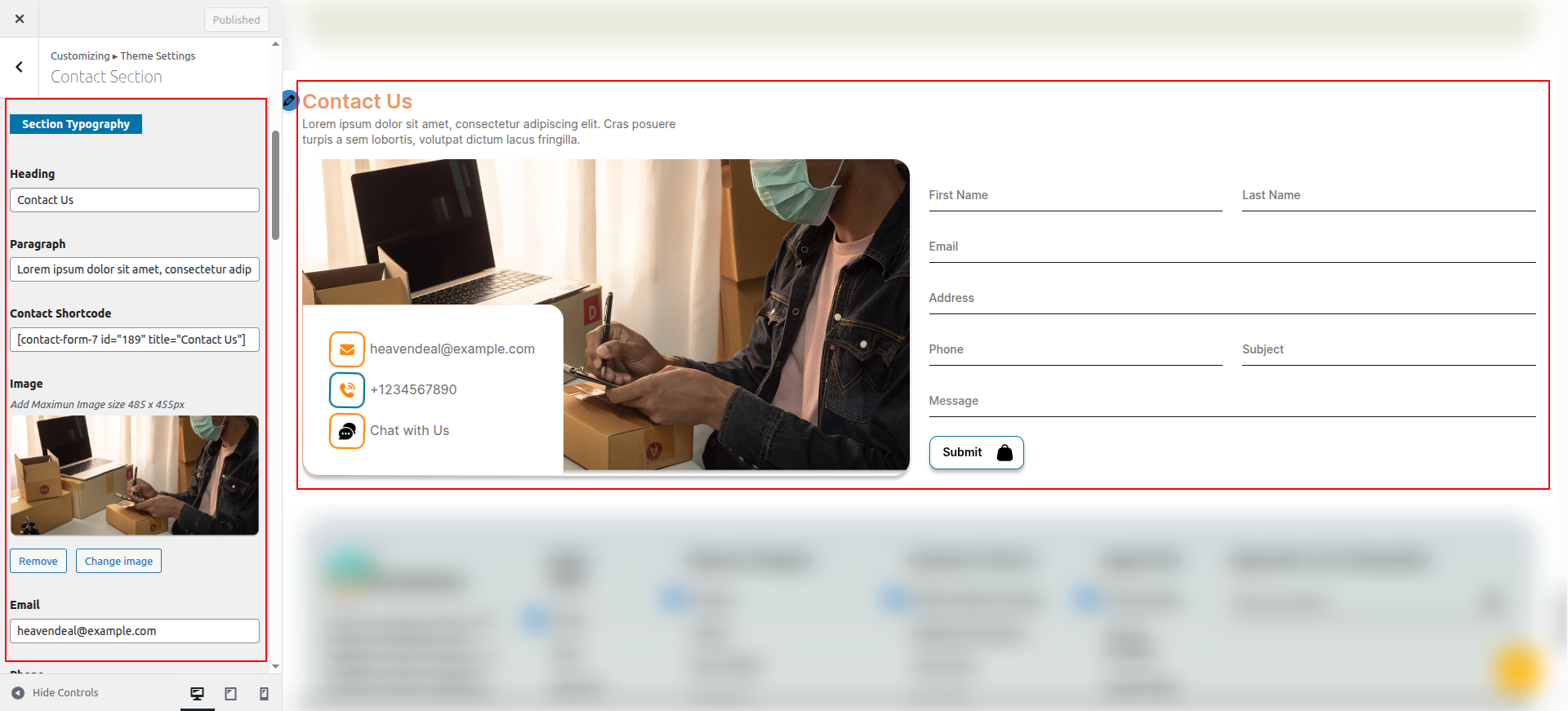 Go to Appearance >> Customize >> Theme Settings >> Contact Section