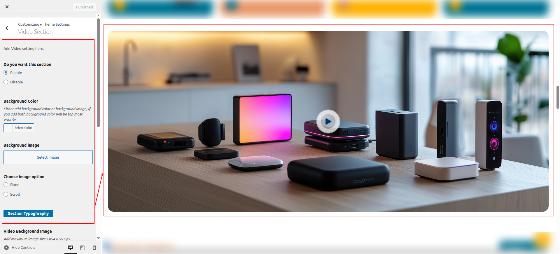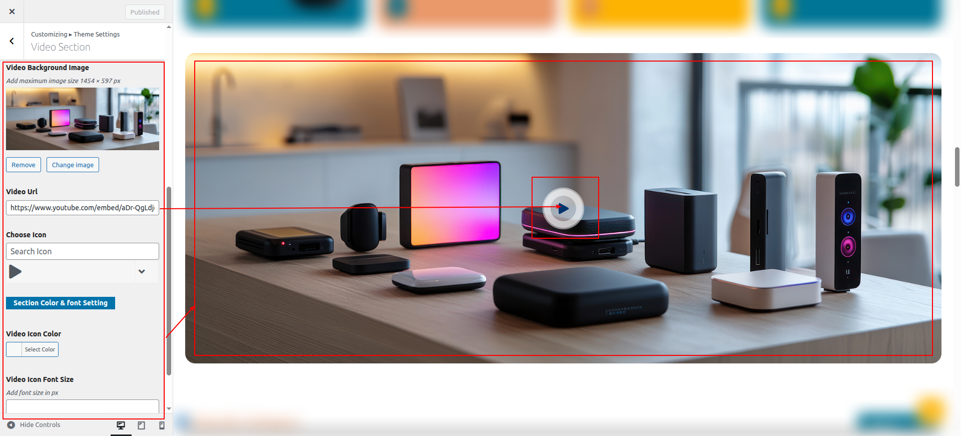 Go to Appearance >> Customize >> Theme Settings >> Video Section