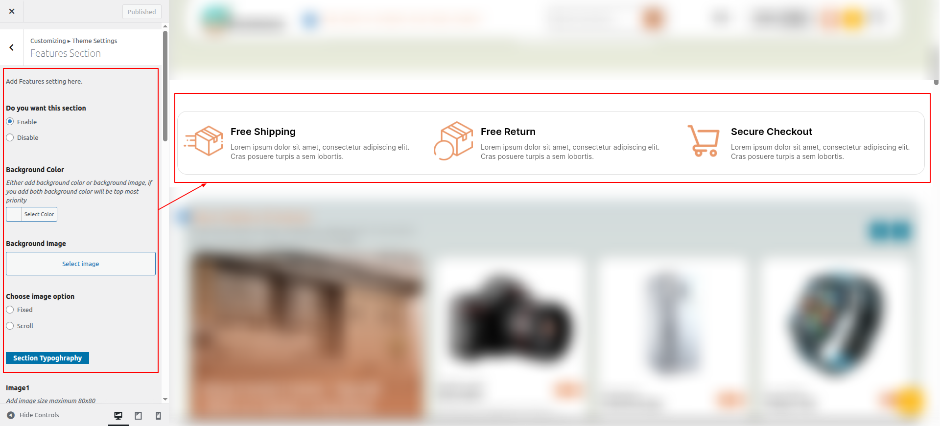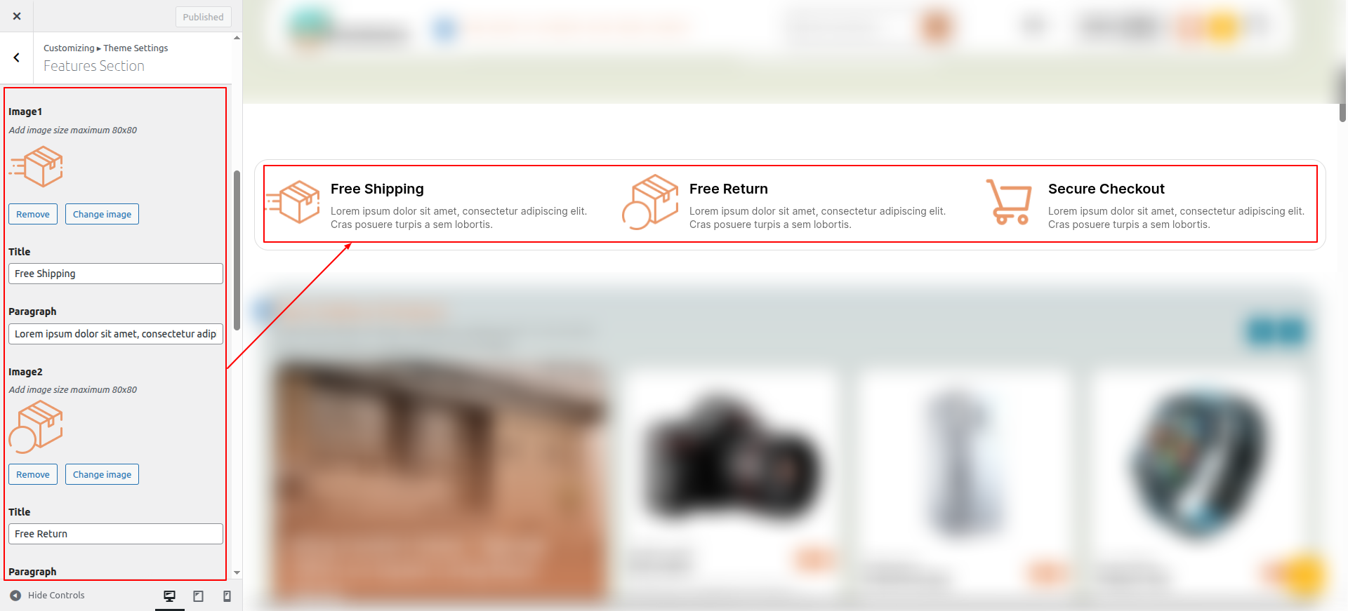 Go to Appearance >> Customize >> Theme Settings >> Features Section