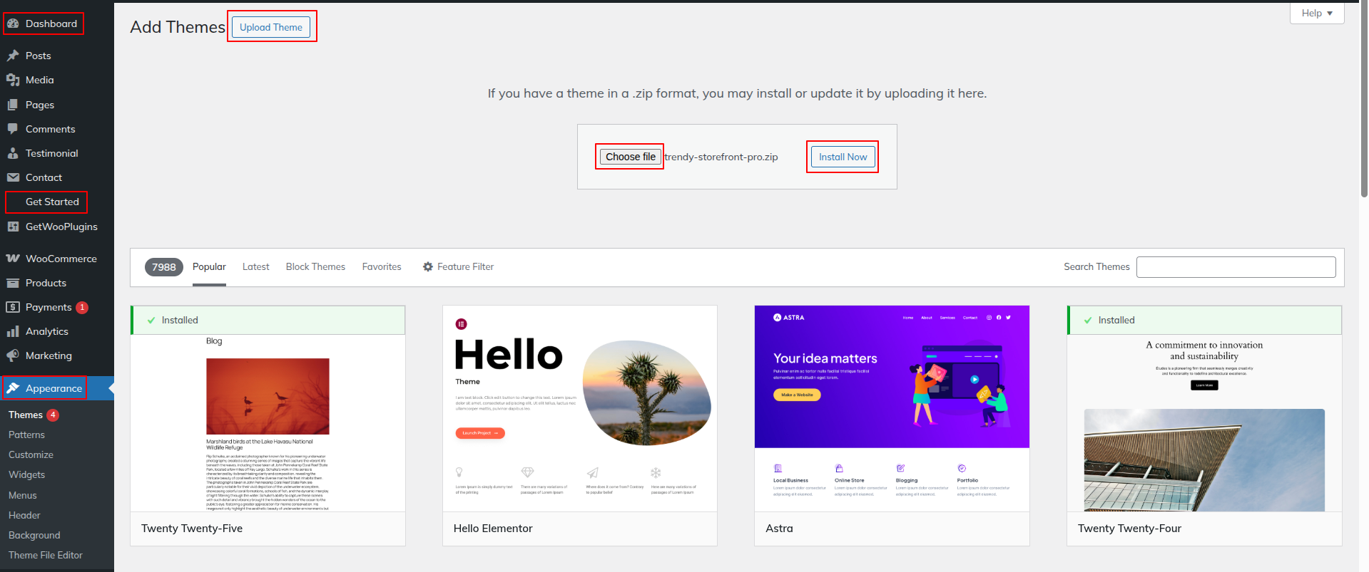 Your second installation option is to use FTP to upload the theme. To apply this method, first use FTP to access your website, then go to the wp-content/themes folder to find your themes. After you unzip the theme file you obtained, all that has to be uploaded to your server is the extracted Total folder.