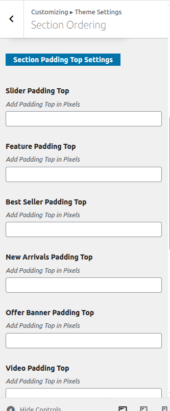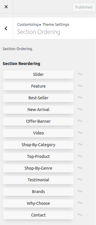 First Step Navigate to Dashboard >> Customize >> Theme Settings >> Section Ordering