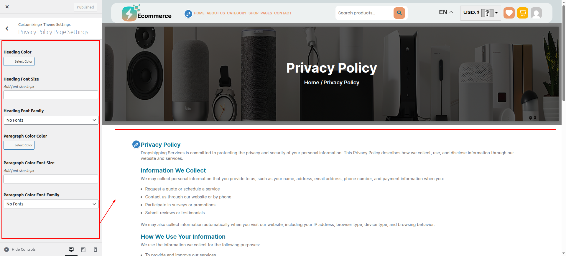 Go to Appearance >> Customize >> Theme Settings >> Privacy Policy Page Settings