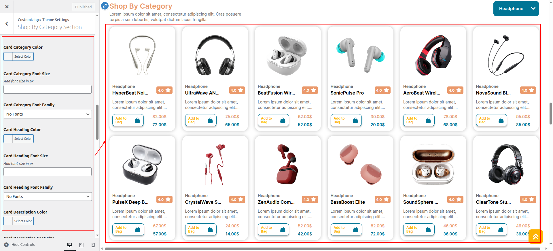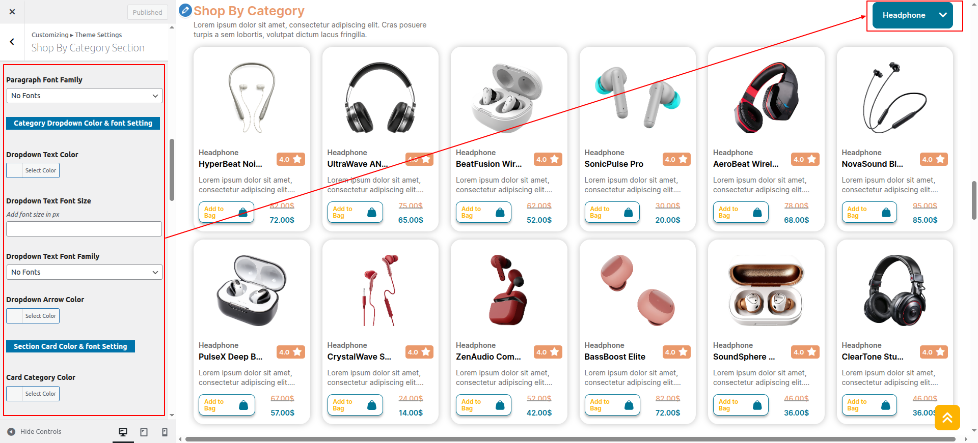 Go to Appearance >> Customize >> Theme Settings >>Shop By Category Section