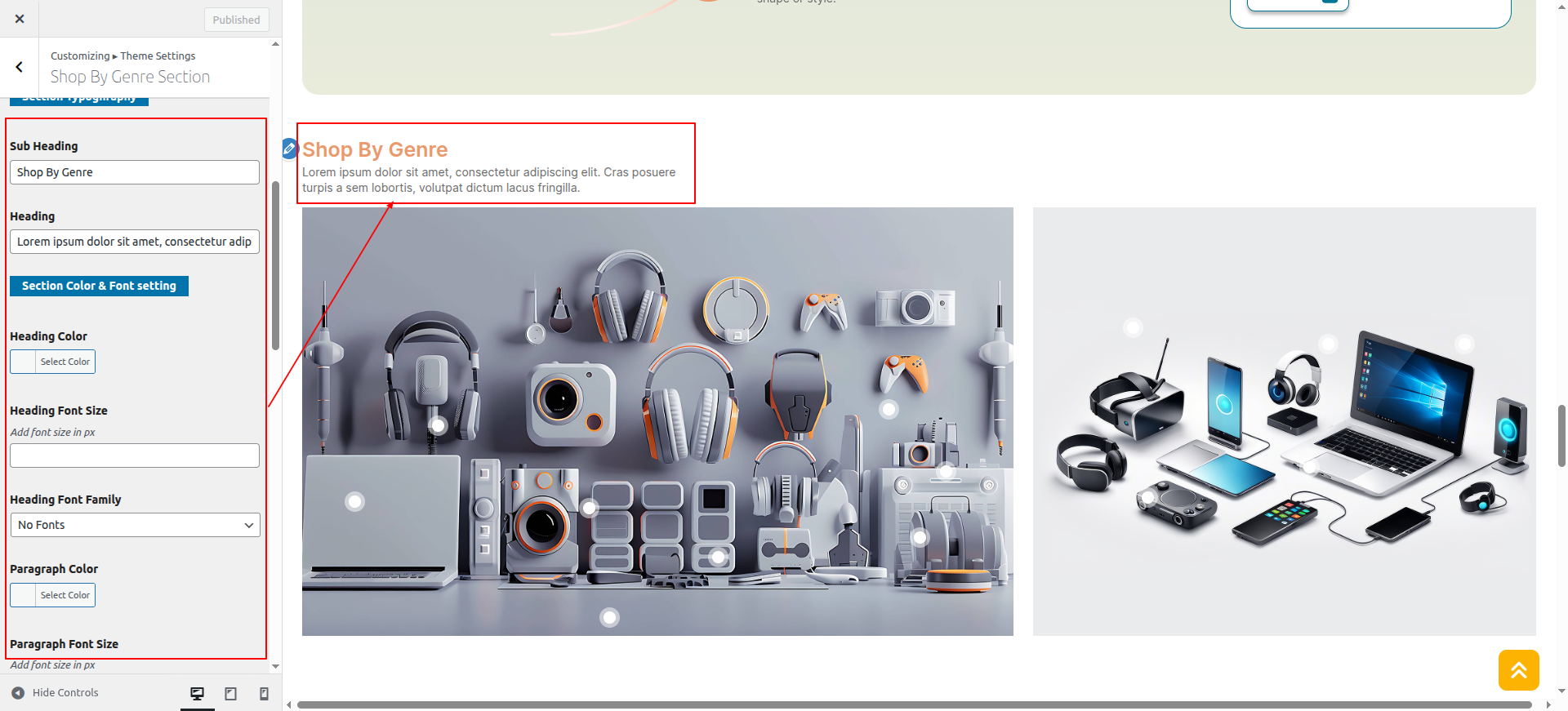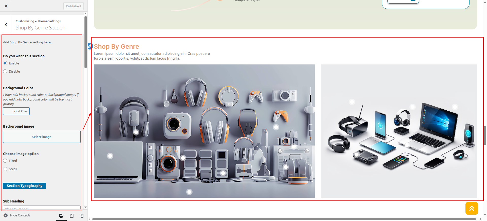 Go to Appearance >> Customize >> Theme Settings >>Shop By Genre Section