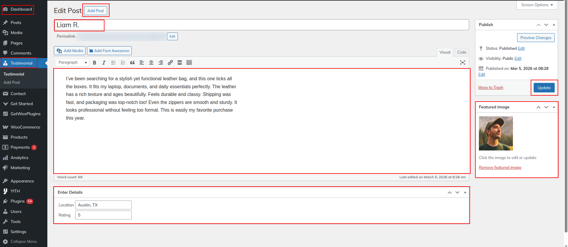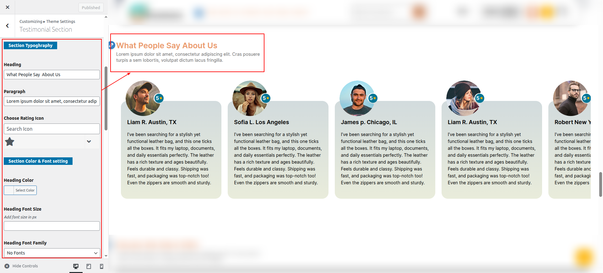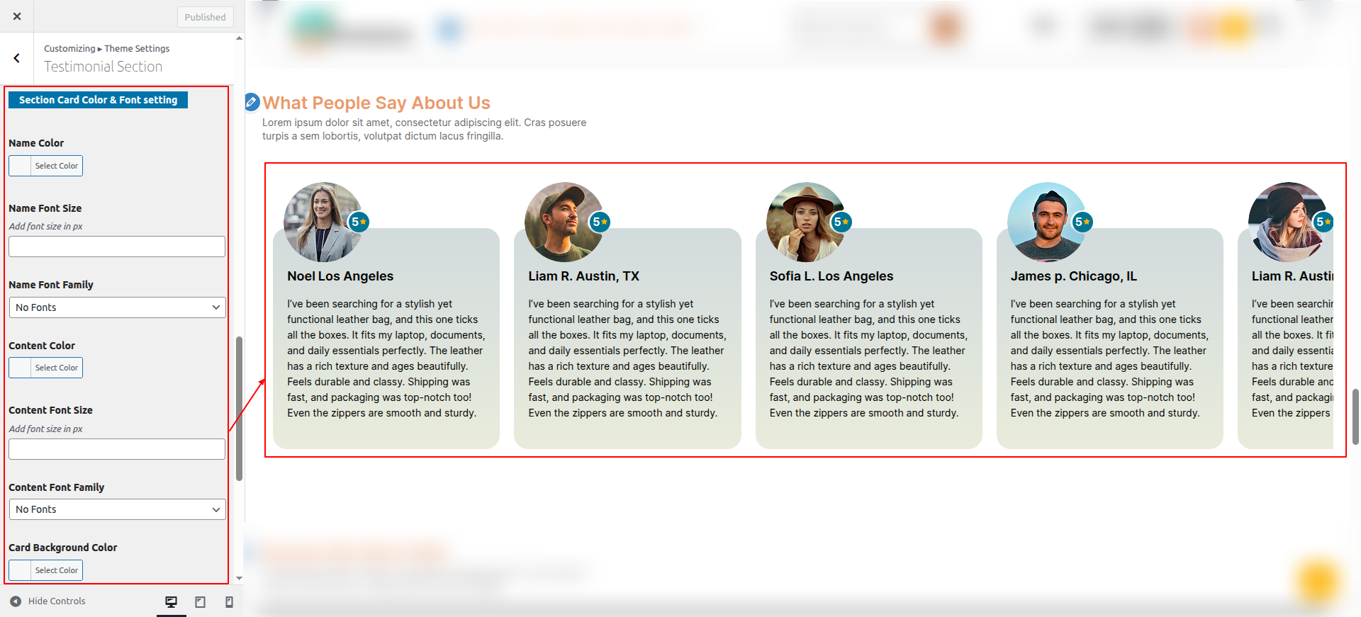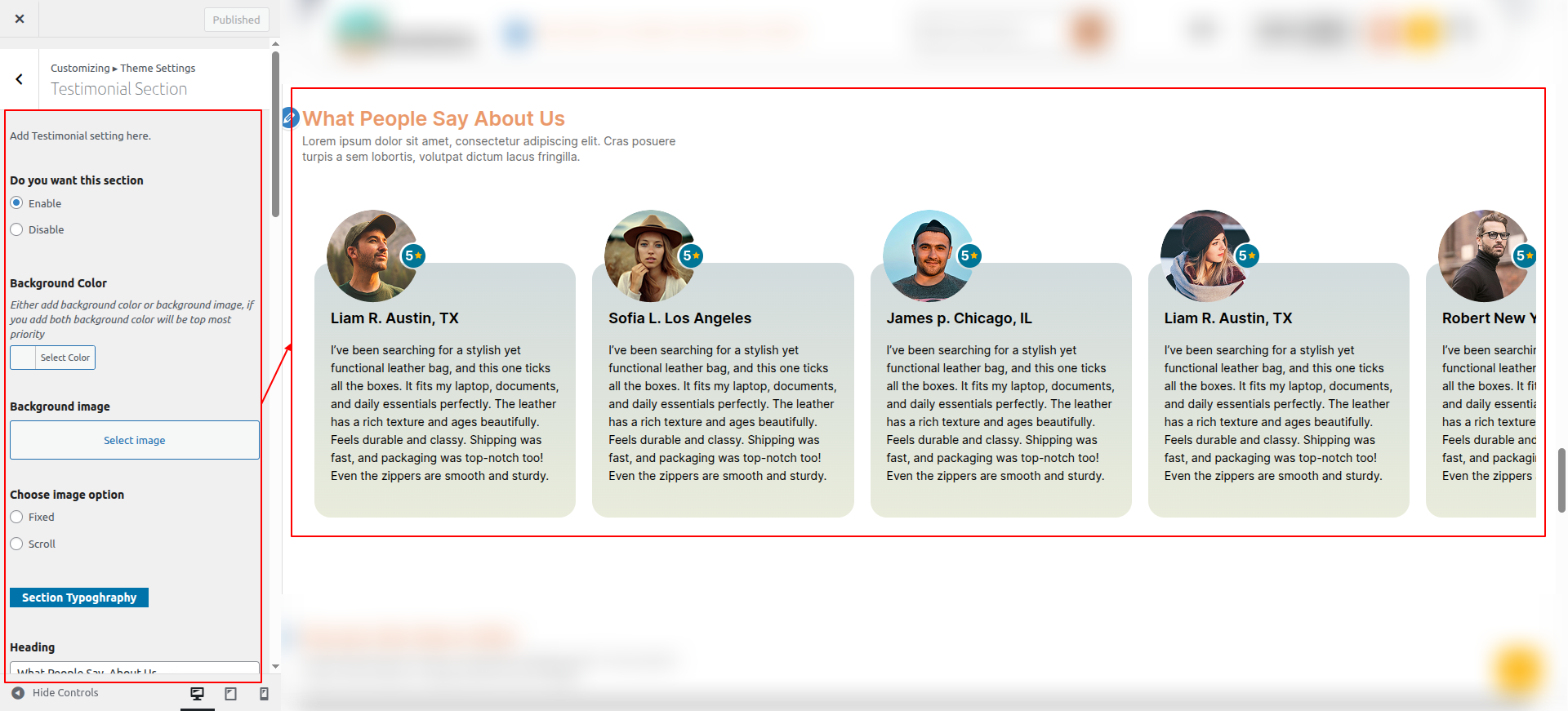 Go to Appearance >> Customize >> Theme Settings >> Testimonial Section